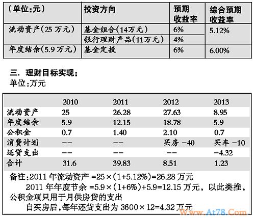 林先生,28岁,刚刚结婚。他本人是某大型企业的一名会计,年薪4.5万元,另外每年大约有7000元的公积金。太太27岁,是某百货公司的经理,年薪5万元,有社会与医疗保险。目前两人还是无房无车一族。两人共有银行存款11万元,基金14万元。两人希望先买房买车后再生孩子,请问该如何理财才能实现?