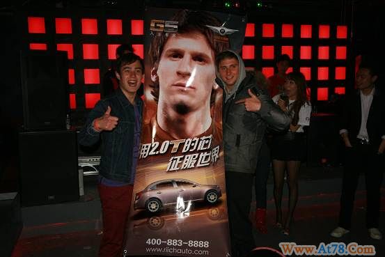 门前的梅西之夜大幅画面,引来老外的驻足围观,我大概看了一下也得有5米多长,3米多高,展示G5车辆可以进去感受