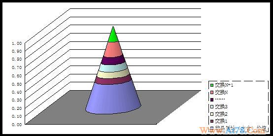 从图1我们可以看到,如果假定其它内外部条件都不变,某一物品、资产的原始价值或者内含价值只有5,通过一次次不断的交换,没交换一次,它的价值(在图1中表现为各种颜色的圆环条)就不会一点点不断增加,这个增加的圆环部分就是“溢价”,或者说是流动带来的附加值。