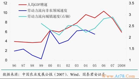 图1:中国的劳动力流动与人均GDP 增速状况相关