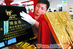 上周,一组由中国印钞造币总公司发行、中钞国鼎公司总经销的“上海世博金典藏版”在上海世博园区内展出,该产品由三根各重33.33公斤的金条组成,总重达近百公斤。借着盛会的喜气,这款堪称国内黄金市场前所未有的“重量级”产品也可以称得上是“世博第一金”。与国内疲敝的楼市、股市不同,携国际市场对年内每盎司1500美元的预期,世博金现场爆出了3580万元的惊人售价。