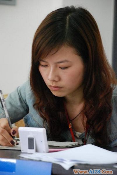 正在认真做赛前准备的美女