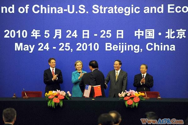 5月25日,中美双方在北京签署七项合作协议,涉及能源、贸易、融资、核能利用等多个方面。中国国家主席胡锦涛特别代表国务院副总理王岐山和国务委员戴秉国,美国总统奥巴马特别代表、国务卿希拉里·克林顿和财政部长蒂莫西·盖特纳等参加第二轮中美战略与经济对话的两国高官出席了签字仪式。