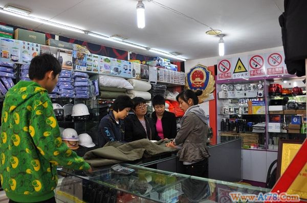 图片09(下图):这次捐助活动有女同胞参与,所以,做事更细心。当发现孩子们的被褥比较单薄、破旧后,他们立即去买被子。为了买到质量好的,他们连续跑了多个商店进行比较。这是第一家。