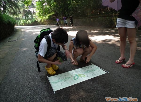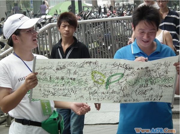 看,来自上海的汪峰正在南京的一角收集签名,还在为小妹妹耐心讲解,很敬业。