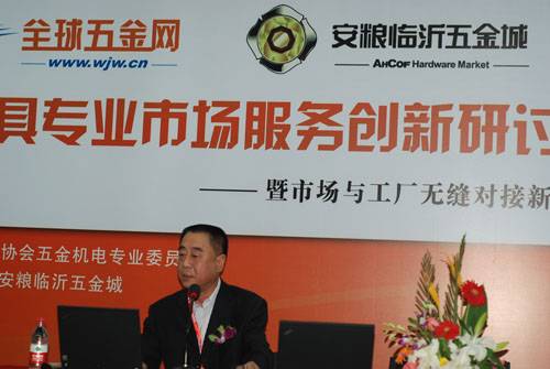 2011年9月22日上午,“五金工具专业市场服务创新研讨会”在上海新国际博览中心M17会场隆重召开。本次会议由中国电子商务协会五金机电专业委员会主办,由安粮临沂五金城、全球五金网、上海新国际展览中心共同承办。浙江省五金机电商会执行会长朱会林、安粮临沂五金城总经理周家全、五金工具行业设计专家吴贵敏,浙江三锋实业股份有限公司总经理米颖、全球五金网CEO李建宏等领导以及100多位五金工具企业代表参加了本次会议。