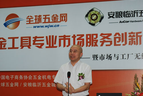 会议上,安粮临沂五金城总经理周家全发表了热情洋溢的讲话,他告诉大家,五金行业发展历史及其悠久,覆盖极其广泛,总类及其繁多,单个企业的规模却极其小,绝大多数企业依然存在“走低端、老传统路线,缺乏创新,市场渠道窄”等问题,传统的五金市场也越来越多的出现恶性竞争。五金行业,比很多重工业、大型工业更需要整体链条的整合。在此情形下,安粮临沂五金城顺势而生,以信用为前提,提高门槛、规范管理、加强服务,竭力协助广大商户走出在传统五金市场中的发展瓶颈。此外,安粮临沂五金城定位国际五金工具采购中心,依托山东半岛雄厚经济基础、临沂市的商贸物流优势以及安粮集团自身的多年积聚,将为商户提供独有的金融担保、国际贸易、仓储物流、电子商务、展会展贸和品牌孵化等六大平台,致力成为中国五金工具生产企业综合服务商,让所有的经营户在这里不仅获得一个良好的经营环境,还能获得商贸物流的盈利、物业升值的盈利以及整个市场从初生到成熟带来的盈利。