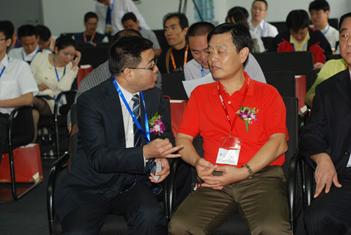 安粮临沂五金城总经理周家全先生和与会嘉宾交流