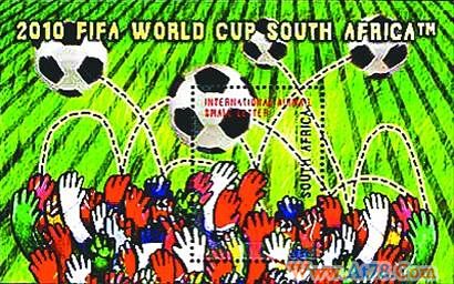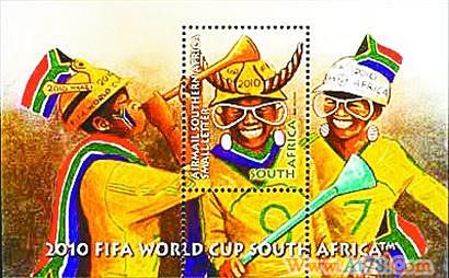 2008年9月5日,2010年世界杯预选赛在各大洲全面展开,南非发行第三组邮票,图案为球迷。