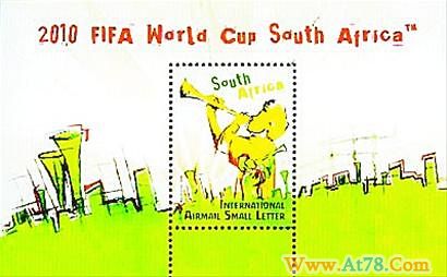 2009年6月14日,国际足联09年联合会杯赛在南非举行,这也是10年世界杯的一次预演。参赛球队包括东道主南非队,德国世界杯冠军意大利队,欧洲杯冠军西班牙队,亚洲冠军伊拉克队,非洲冠军埃及队,大洋洲冠军新西兰队,中北美金杯赛冠军美国队,美洲杯冠军巴西队。为纪念这次联合会杯赛,也是为了迎接2010年南非世界杯的到来,南非发行了《2010年世界杯足球赛》系列邮票的第四组,图案仍然为球迷。值得注意的是,球迷手中的长号为南非特有的民间传统乐器,曾在联合会杯上大显神威,成为赛场上一道独特的风景。