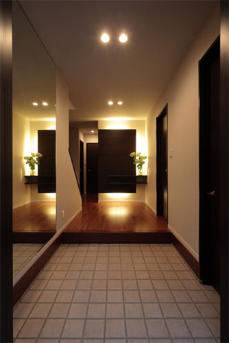 玄关 编辑点评:狭窄的玄关处用落地玻璃镜来拓宽视觉面积,深咖啡色-浅咖啡色-米色的层层颜色变