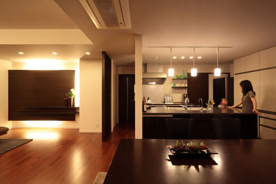 编辑点评:厨房讲求干净整洁,在灯光选择的时候也要注意,用白色的灯就比用淡黄色的灯光来得更加适合。开放式的厨房使厨房和饭厅的空间更加宽敞。