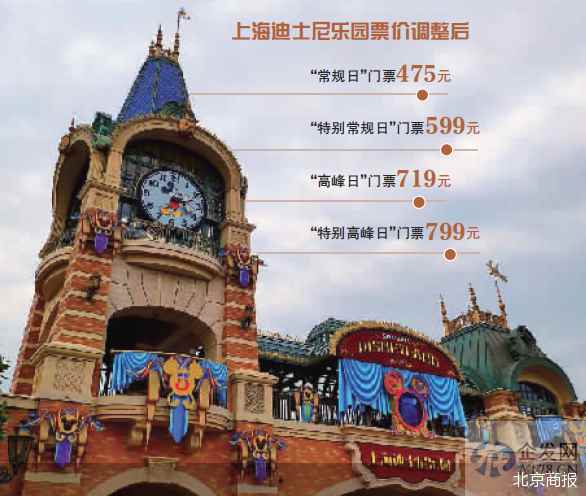 据了解,自2023年6月23日起,上海迪士尼度假区将在现行四级票价结构下调整上海迪士尼乐园的门票价格。其中,“常规日”门票价格为475元,涵盖大部分平日和部分周末;“特别常规日”门票价格为599元,涵盖部分周末和部分平日;“高峰日”门票价格为719元,涵盖夏季大部分日期、部分中国法定节假日放假和调休期间及其前后部分日期、国际性节日庆祝期间、乐园特别活动日以及其他客流高峰日;“特别高峰日”门票价格为799元,涵盖部分中国法定节假日放假和调休期间、乐园特别活动日以及夏季部分日期。