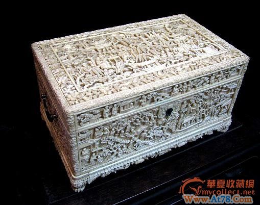 清末 象牙雕庭院人物盖盒