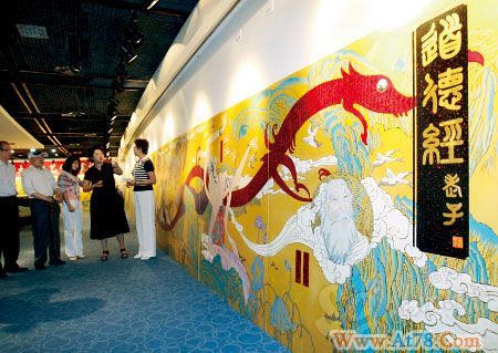 漆艺名家沈锦丽向记者介绍,此作品画面以对中国传统思想影响巨大的老子《道德经》为主题,采用有着7000多年历史的古老漆艺艺术形式,由漆宝斋锦丽漆艺工作室传承的锦花漆画和锦丽堆漆工艺制作而成。同时,还有中国当代绘画名家罗钧、张印等漆艺名家、巨匠参与制作。展现了老子诞生、老子出关、孔子问礼、汤王求雨、尧帝禅让、太公垂钓、孟尝君纳贤、三顾茅庐、道法自然、上善若水、和谐盛世、国泰民安等12个篇章,从而反映华夏圣人老子所倡导的抱朴守真的道德价值、兼爱和同的情怀哲理、崇俭抑奢的生活信念、顺应自然的行为法则。“可以说,这是继厦门优必德和北京漆宝斋锦丽漆艺工作室完成北京人民大会堂漆画、奥运鸟巢贵宾厅漆艺、上海世博会联合国国际信息发展网馆VIP贵宾厅漆艺装饰等传世佳作以来,为弘扬创新传统文化艺术的又一次艺术奉献。” 在沈锦丽看来,从老子撰写万经之王《道德经》到大型漆艺壁画作品《道德经颂》整整等待约了2700年。
