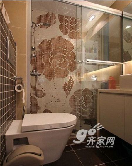 描述:墙地砖和厨房的色系是一样的!只不过卫生间的墙砖比厨房间略微深一些,当初特价的时候淘到哒!淋浴区这面马赛克拼花是我坚持要的,^