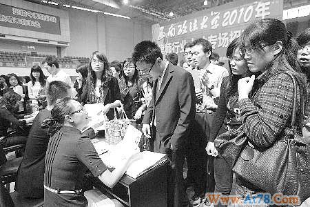 西南政法大学举行2010专场招聘会,毕业生与用人单位人员在交流。