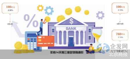 北京商报讯(记者刘四红)央行年内第三度重启14天期逆回购操作,引发关注。12月19日,央行官网发布消息称,为维护年末流动性平稳,以利率招标方式开展了850亿元7天期和14天期逆回购操作,其中7天期逆回购90亿元,利率2%;14天期逆回购760亿元,利率2.15%。因12月19日有20亿元逆回购到期,当日实现净投放830亿元。
