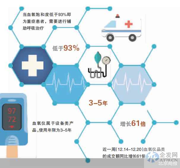 12月8日,国务院联防联控机制发布新冠病毒感染者居家治疗指南,指南提出,各地要加强基层医疗卫生机构常用药品、抗原检测试剂、指夹式血氧仪等储备,切实满足居家治疗人员用药和健康监测需求。连续几版的《新型冠状病毒肺炎诊疗方案》里写到,当血氧饱和度低于93%即为重症患者,需要进行辅助呼吸治疗。