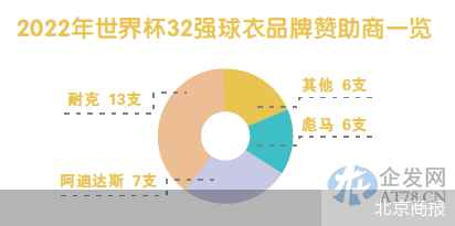 从数量上来看,耐克、阿迪达斯、彪马三家品牌共赞助了26支国家队的球衣。耐克赞助球队数量也首次超过阿迪达斯,成为本届世界杯最大球衣赞助商。