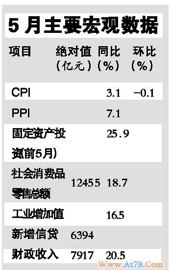 5月份CPI同比增长3.1%,大大高于4月份的2.8%,PPI同比增长7.1%,CPI和PPI的涨幅分别高于市场预期的3%和6.8%。