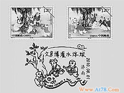 图为即将发行的邮票、邮戳图样。 中国邮政定于6月1日发行《文彦博灌水浮球》特