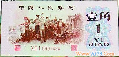 “背绿水颖壹角券于1962年印刷,其正面为深棕色,与普通的壹角券票面无异,但背面却有部分颜色为墨绿色,故集币界称之为“背绿壹角”。“背绿壹角”由于印刷时采用的钞票纸不同,有带五星水油无水印两种版式,其中带五星水印的“背绿壹角”存世量十分稀少。在2000年以前,“背绿水颖壹角券从未发现过赝品。近年来,由于“背绿水颖升值很快,市面上逐步出现了赝品,造假者采用各种高科技手段进行伪造。识别方法如下: