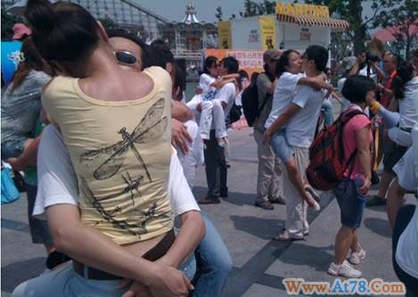 当天一个很吸引人的活动是亲吻大赛, 77对情侣比接吻,看谁最终胜利。围观的都叫好加油啦,跟他一起看这个我觉得有点没羞没臊,但他含情脉脉滴说:咱俩要早点认识,说不定也能来参加了~当时我有点瞬间沦陷的感觉。
