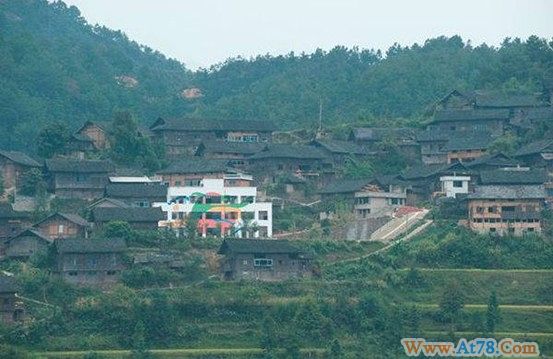 白碧小学很美!~青山黑瓦红墙,苗寨风情~彩色的学校那么醒目!