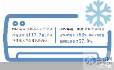 随着后疫情时代的到来,以健康化为趋势的空调未来市场走向也开始清晰。据GFK公开数据显示,2022年前三季度新风空调销售量同比增长了83%,相应的销售额同比增长了57.9%。2023年,国内空调市场的这一风口有望分别实现54%和41.7%的量额增幅。