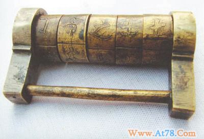 传统的锁具中,有的形似一对鸳鸯,需两把钥匙同时开启的“连环锁”;用钥匙插入机关,对锁连击三掌才能开启的“三巴掌锁”等。笔者见过一把铜锁,上面有5个字,要想开启锁,需将这些字对成五言绝句,诗句对正确了,锁才会打开。