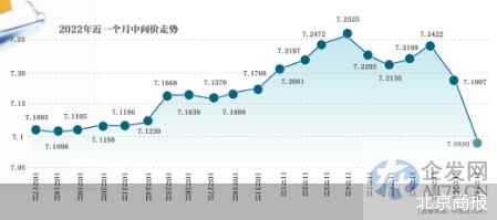 11月14日,央行授权中国外汇交易中心公布,2022年11月14日银行间外汇市场人民币汇率中间价为:1美元对人民币7.0899元,升值至2022年9月27日以来最高。前一交易日中间价报7.1907元,单日调升1008基点,创下2005年7月22日以来最大升幅。