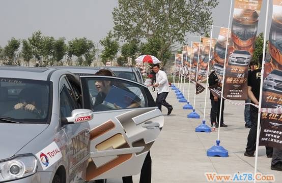 我喜欢热闹,哪人多往哪扎,呵呵。仔细打听人家都是签过试驾协议的,我直奔试驾场地了……程序弄错了,就像开车一样,得先踩离合后挂档,哈哈……