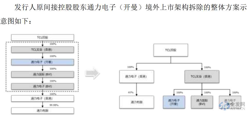 通力电子完成私有化之后,控股股东就通过三个步骤着手拆除通力股份的境外上市架构。架构拆除完成后,TCL控股通过控制通力电子(香港)控制通力股份,减少了之间的间接持股关系。