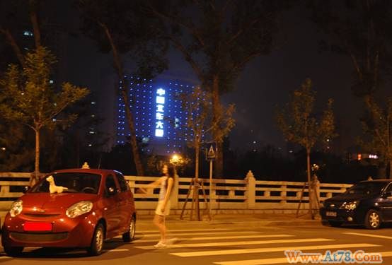 昨天去朋友家看球,十点的那场结束后,俺拿着新配的狗头D90在桥上拍夜景,看见两辆红黑瑞麒M1好像刮蹭了