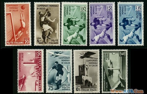 行家告诉记者,世界杯邮票如果追溯到上世纪30年代,价格比较贵。据了解,第一个为世界杯足球赛发行邮票的国家是意大利。1934年,第二届世界杯赛由意大利主办,东道主意大利发行了5枚普通邮票,图案是球场比赛场面;4枚航空邮票,图案分别是三座新建的体育场,即佛罗伦萨、都灵和波伦亚体育场,图案带有未来派的色彩。在最新版的邮票目录上,这套邮票的新票价格已经接近了3000元。因此,这也是目前世界上最贵的单套世界杯邮票。记者转了多个摊位,并没发现有这套邮票出售。