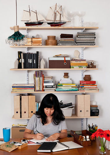 编辑点评:多层置物架,物品由轻到重,从上往下摆放,常用的物品放在自己容易拿取的那层,重量较轻的摆设等不常用的物品,应该放在书架顶层。对于散张的资料,买些单格文件架来收纳,如果觉得这些资料破坏家居的视觉效果,就将长边朝向外面。