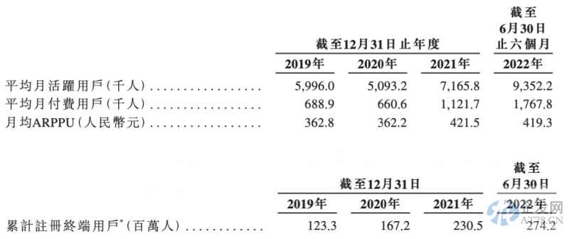 不过,中旭未来表示,注册终端用户及活跃终端用户的数量未必代表公司的实际及潜在收益创造能力。2019年、2020年及2021年以及截至2022年6月30日止六个月,平均月付费用户分别为68.89万名、66.06万名、112.17万名及176.78万名,分别占同期平均月活跃用户的11.5%、13%、15.7%及18.9%。