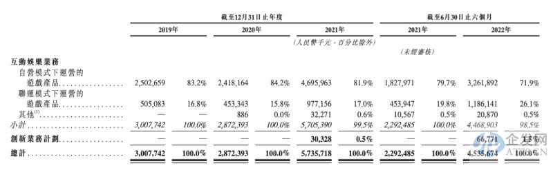 从营收构成来看,中旭未来收入主要来源于自营和联运的游戏产品,2022年上半年占比达98%。