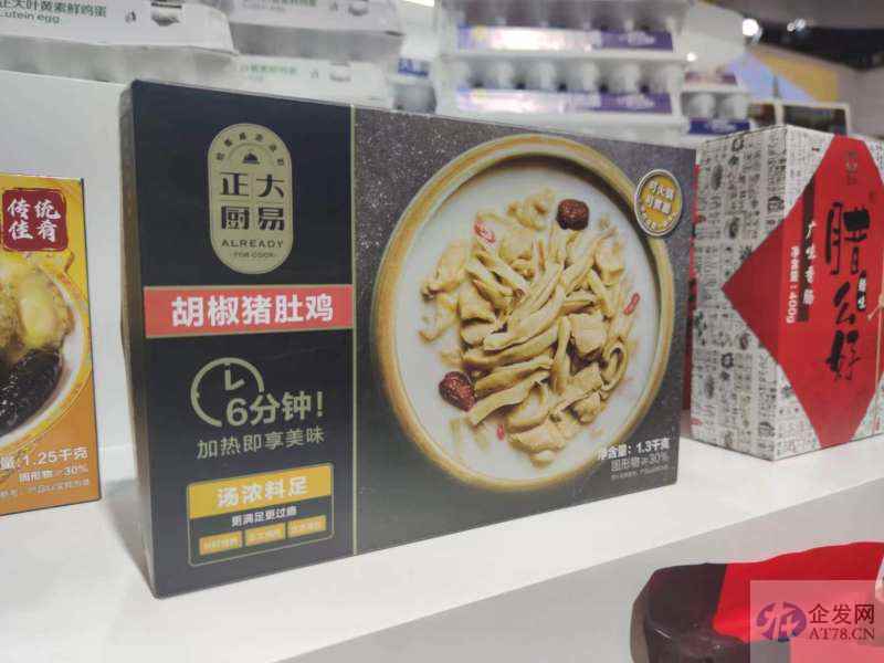 正大作为更加本土化的跨国企业,在预制菜的布局更加中式化。在进博会上,正大展示了猪肚鸡、佛跳墙、宫保鸡丁、酸汤鱼的中式产品。