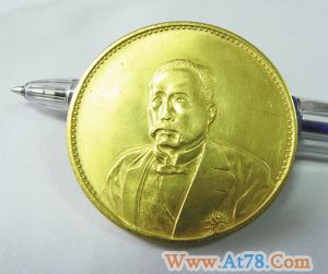此外,金东还有段祺瑞、徐世昌头像的执政纪念金币,他将两枚金币并排陈列介绍说,段祺瑞操纵的国会选出前清大臣、袁氏称帝时的国务卿徐世昌为大总统,在天津铸造了面值一元的纪念币,上面是徐世昌的头像。1924年,段祺瑞终于如愿以偿,将自己的头像也铸进了纪念币,金、银各有一种,正面是他的光头便装像,背面稻穗中间有篆体的“和平”二字。“从这些金币上,可以看军阀的众生相。”金东说,各地军阀都不甘落伍,像张作霖等,都曾将自己的肖像铸进纪念币中。
