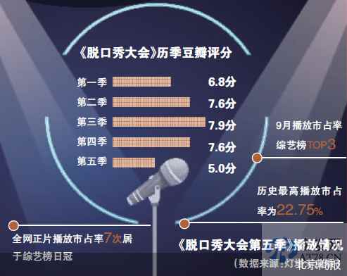 然而,正当《脱口秀大会第五季》热度居高不下之时,节目口碑却一直未能挽回,评分较往季出现明显下滑。