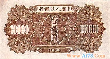 发行情况:第一套人民币分多批次发行,第一批发行的人民币有10元、20元和50元三种券别,随后又发行了1元、5元和100元三种券别,而到1953年12月,人民币发行券别有1元、5元、10元、20元、50元、100元、200元、500元、1000元、5000元、10000元、50000元12种,版别共62种。