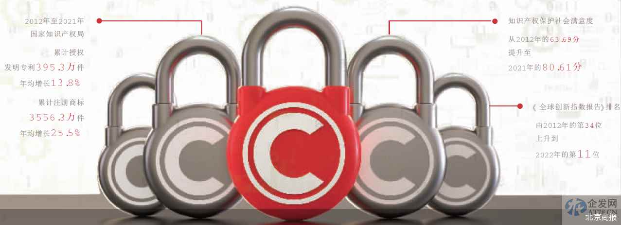 据了解,知识产权保护社会满意度从2012年的63.69分提升至2021年的80.61分,提高了17分,进步巨大。