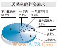 高房价成为公众热议的焦点。调查中当问及“您认为目前本市的房价如何”时,认为高和偏高的受访者共计98.1%。其中,87.1%选择高,11%选择偏高。因此,“京城房价高”已成公认的事实。房价过高直接导致了居民购房计划的搁浅或取消。调查显示,北京54.2%的家庭不打算购房,45.8%的家庭准备买房,但一年内打算购房的仅为全部调查家庭总数的7.1%,有20%的家庭买房的具体时间未定。