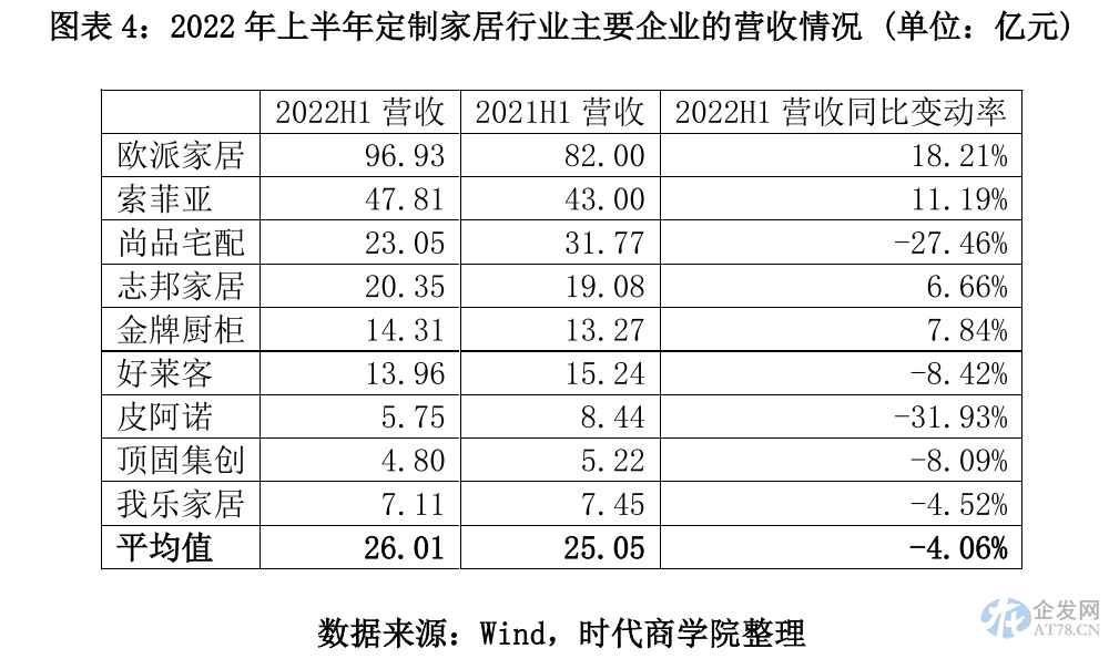 根据Wind数据,2022年上半年,上述9家定制家居上市企业中,有5家营收均呈下降趋势,其中,皮阿诺的营收同比减少了31.93%,尚品宅配的营收同比减少了27.46%。