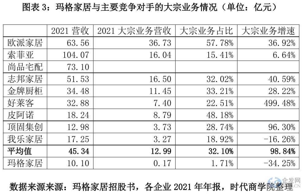时代商学院发现,玛格家居的营业收入及增长率与行业主要企业相比存在明显差距,销售模式也相对落后,竞争力不足。在房地产低迷的大环境下,该公司业绩下滑风险较大。