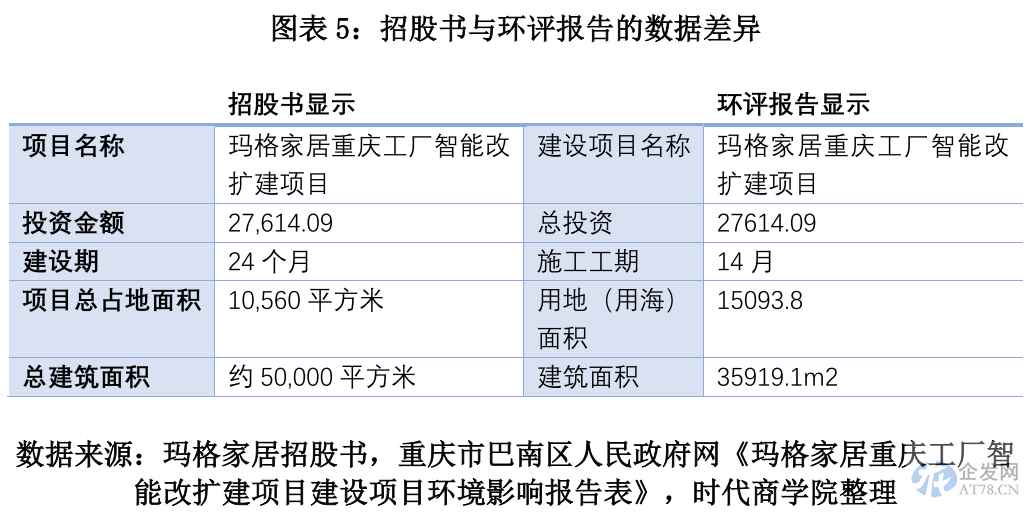 首先,对于募投项目中“玛格家居重庆工厂智能改扩建项目”,招股书中的数据与环评报告中的数据存在差异。