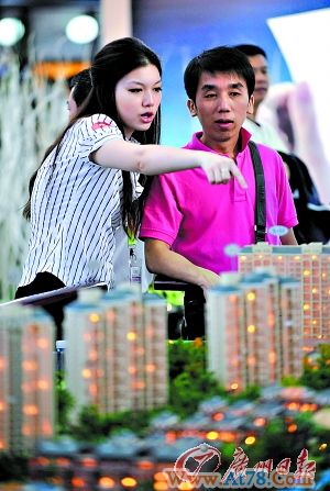 深圳房博会上,一名房地产销售顾问为消费者介绍楼盘。新华社供图