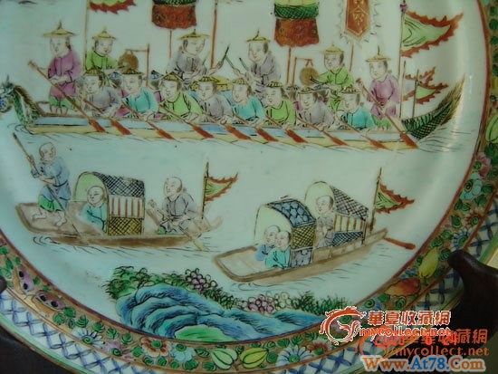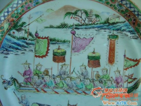 粉彩瓷上的龙舟赛,题材稀少,节日氛围浓厚,色彩粉润艳丽,人物表情各异,生动形象。